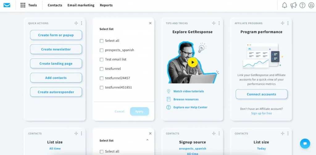 GetResponse is a powerful marketing platform that includes email marketing, automation, landing pages and webinar tools.